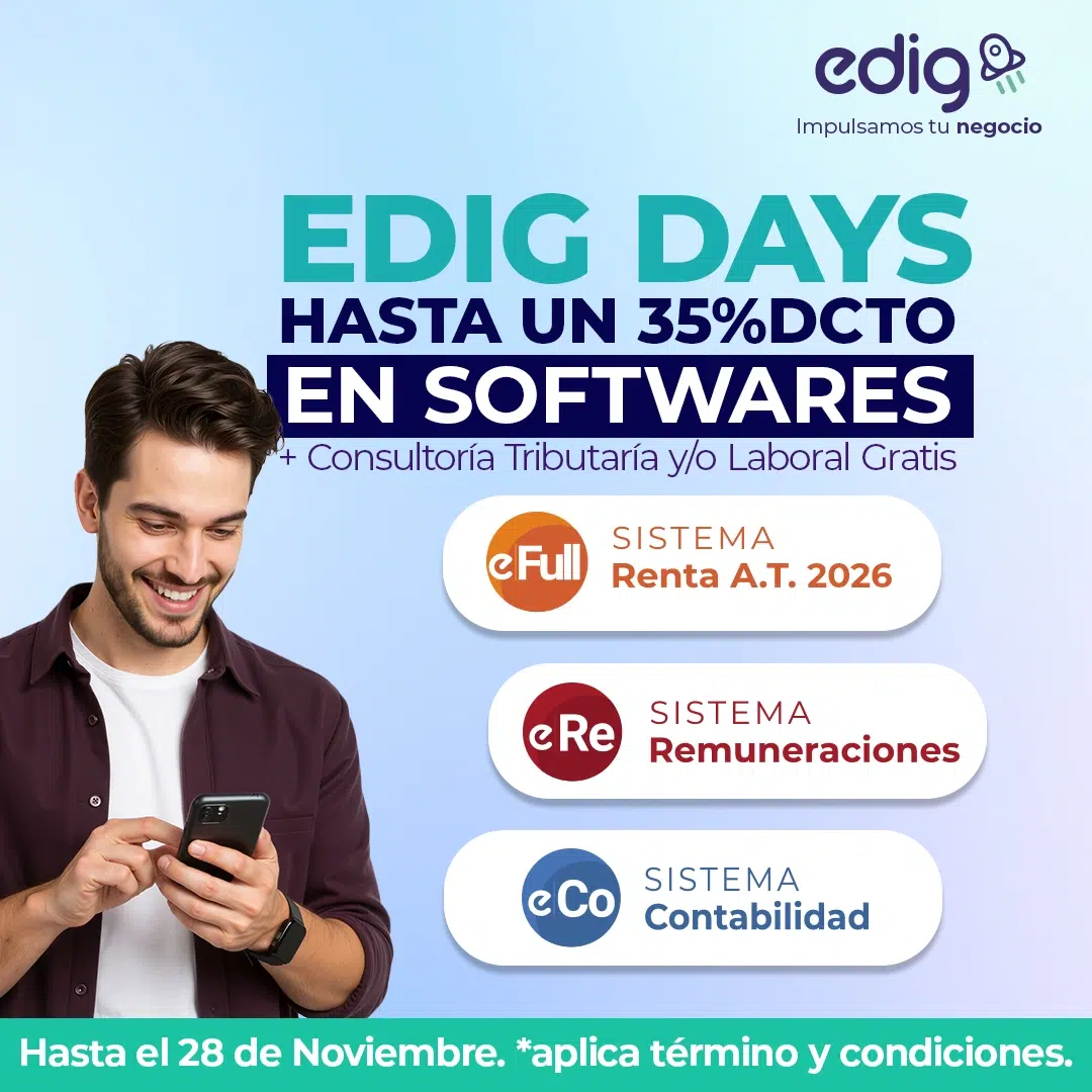 Edig aporta especialistas tributarios y laborales, sistemas informáticos de contabilidad, remuneraciones y renta, además de asesorías, manuales y monografías comentadas y analizadas por expertos de cada área.